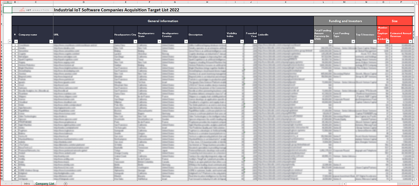 Database Structure โ Industrial IoT Software Companies Acquisition Target List 2022