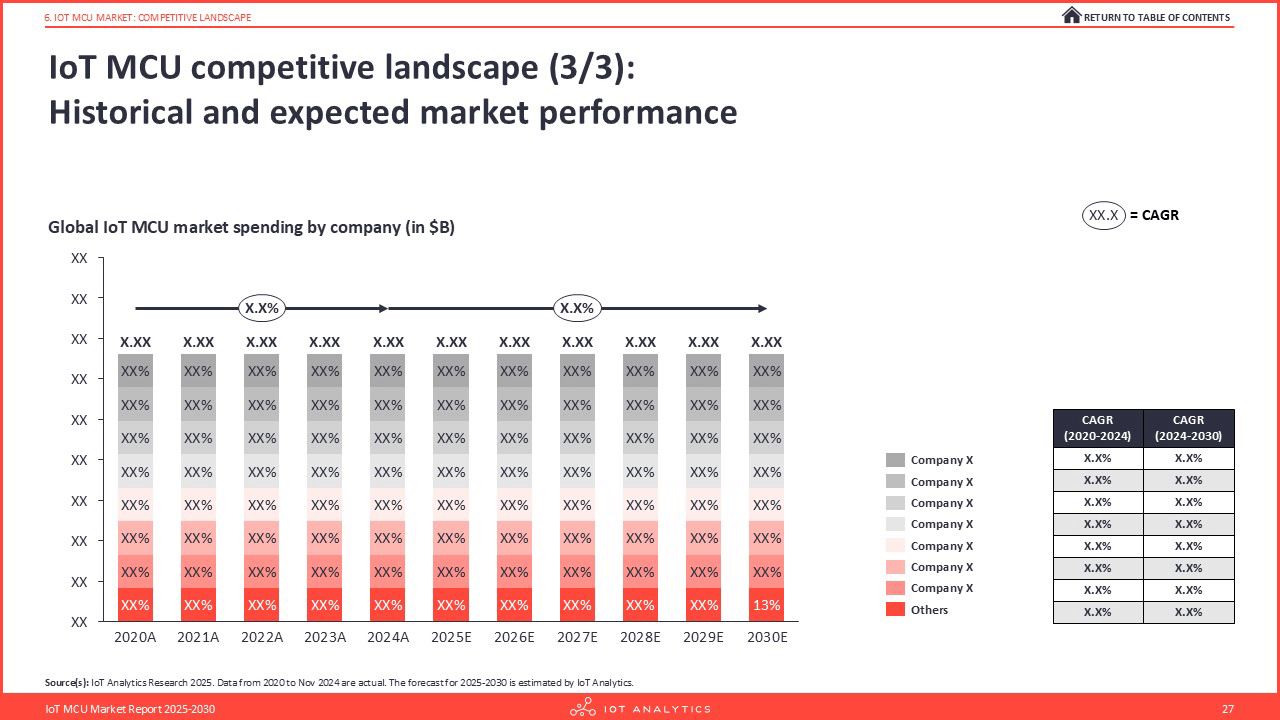 - 91-page report: Detailing the IoT MCU market with a 5-year forecast from 2025 to 2030
